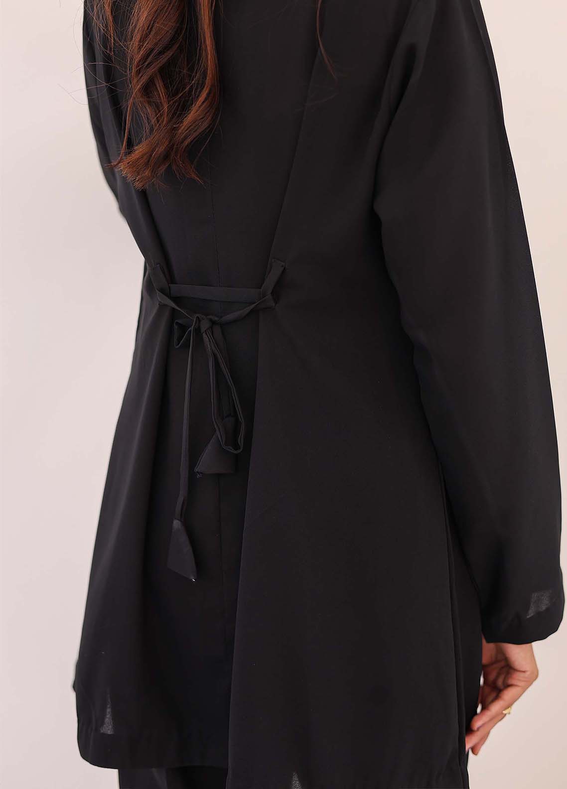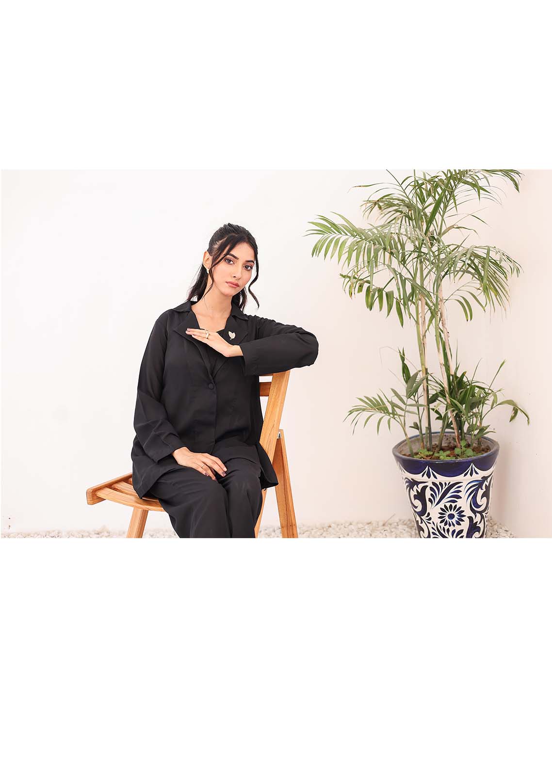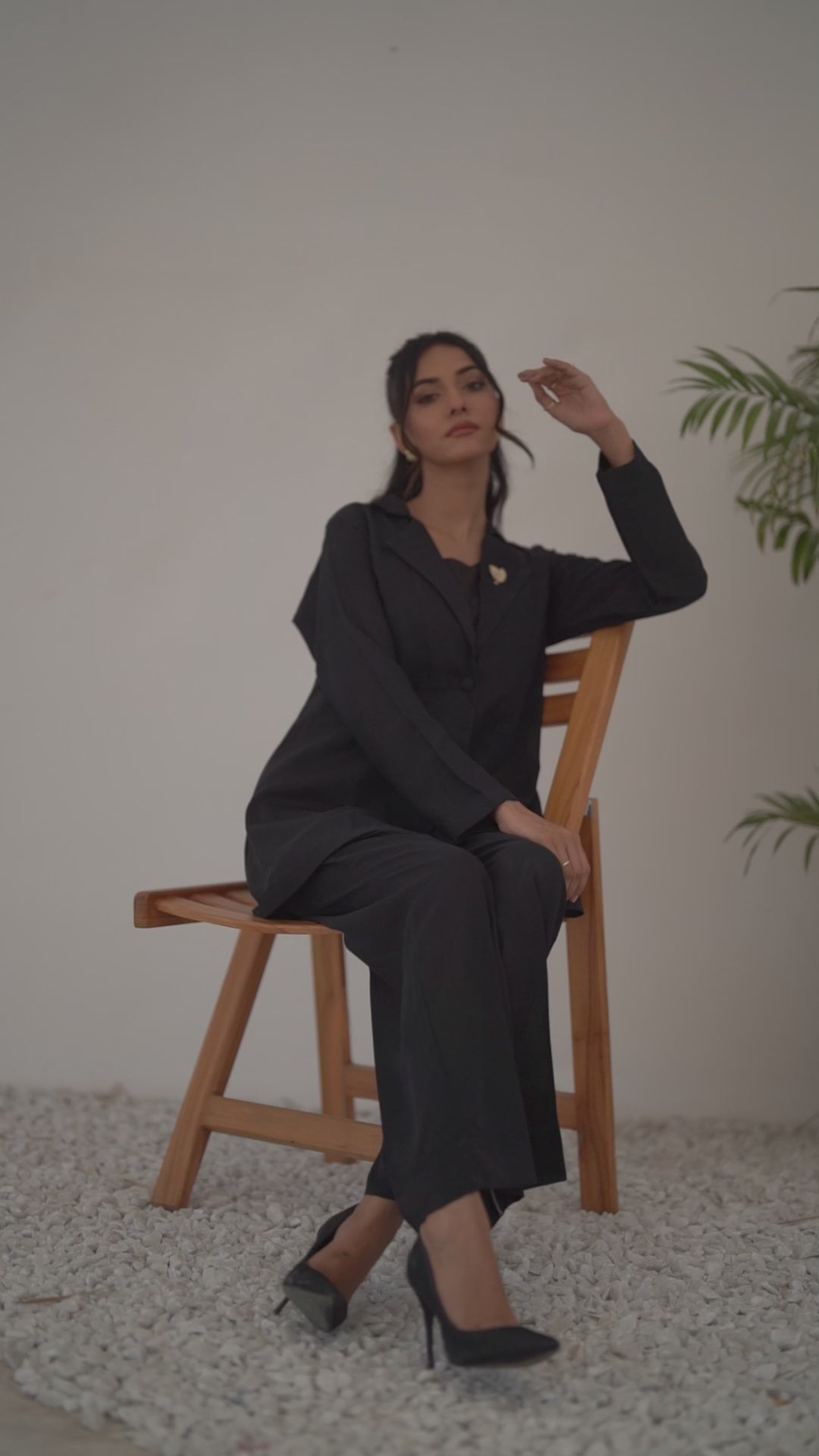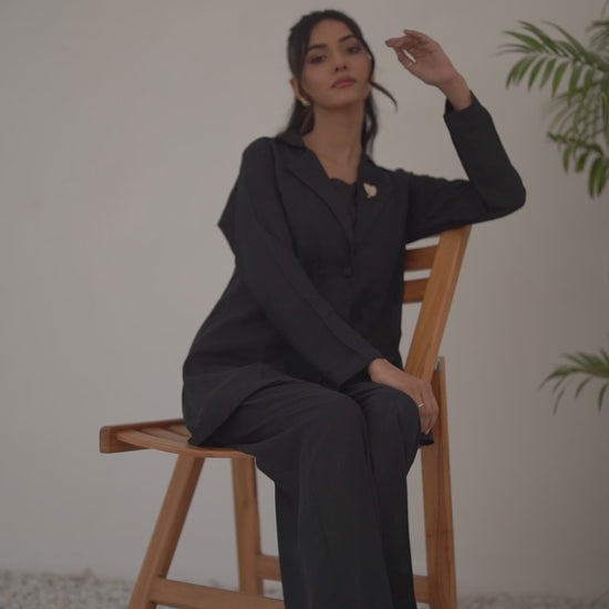 Western allure is discover in Black beat with the western masterpiece cut of Georgette blazer subtle with a Stylish tie-up details at the back. Grace full lapel collar with a golden broach gives a bossy glimpse. Stylish premium Georgette pant’s complete the chic of western dress. Black beat is all our elegant and allure article represents the complete look of western.